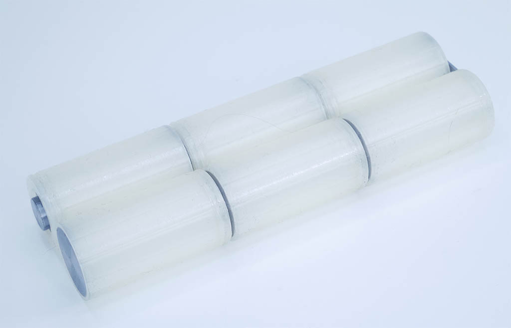 Réalisés en impression 3D bicolore métal et translucide, ces accus peuvent être assemblés côte à côte ou en stick, en 6 ou 7 éléments.