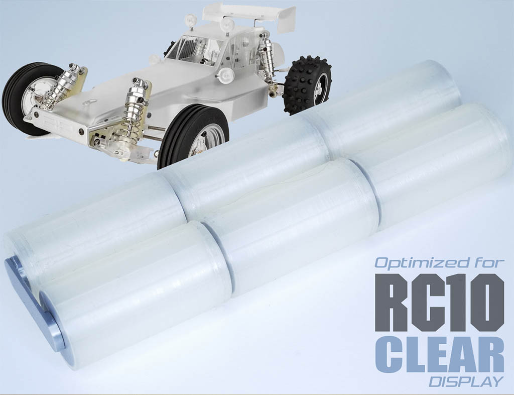 Pour les possesseurs d’un buggy Associated RC10CC (Clear) et qui veulent l’exposer avec un pack, dans le thème de la voiture et sans risque de coulure…