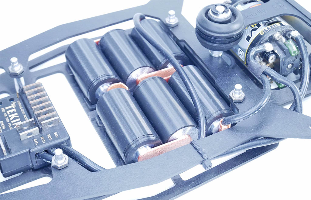 Une solution 100% sûre est d’utiliser de faux éléments pour exposer vos précieuses autos. Réalisés en impression 3D bicolore, ces accus peuvent être assemblés et collés suivant la configuration du châssis. Disponibles en plusieurs couleurs et fournis avec barrettes de liaisons et prises style PK. Il est également possible de les « habiller » avec les stickers MCI Racing ou des étiquettes imprimées. Plusieurs couleurs disponibles pour les éléments. D’autres possibles sur demande.