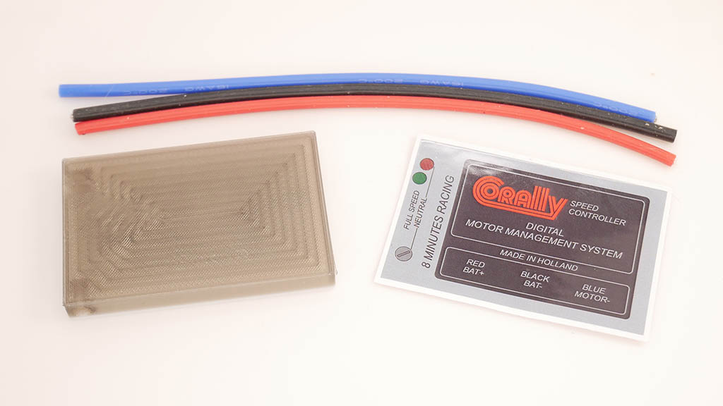 Pour exposer vos voitures RC vintage avec le look de l’époque, sans investir dans une électronique Corally très couteuse et difficile à trouver, voici une réplique fidèle du variateur Corally MMS 8 minutes. Réalisé en impression 3D multicolore et accompagné de son autocollant et de fil silicone 16AWG.