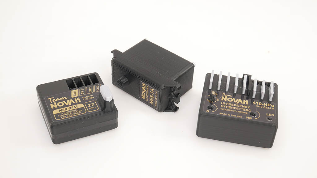 Pour exposer vos voitures RC vintage avec un total look Novak « BLACK », sans investir dans une électronique parfois couteuse et/ou difficile à trouver, voici l’ensemble récepteur, variateur et servo. Réalisé en impression 3D multicolore et accompagnés de leurs autocollants. Ce combo comprend le variateur 410-HPc, le récepteur NER-3FM (ou NER-2S sur demande), le servo NES-1A. Disponibles séparément. Autre couleur de boitiers possible.