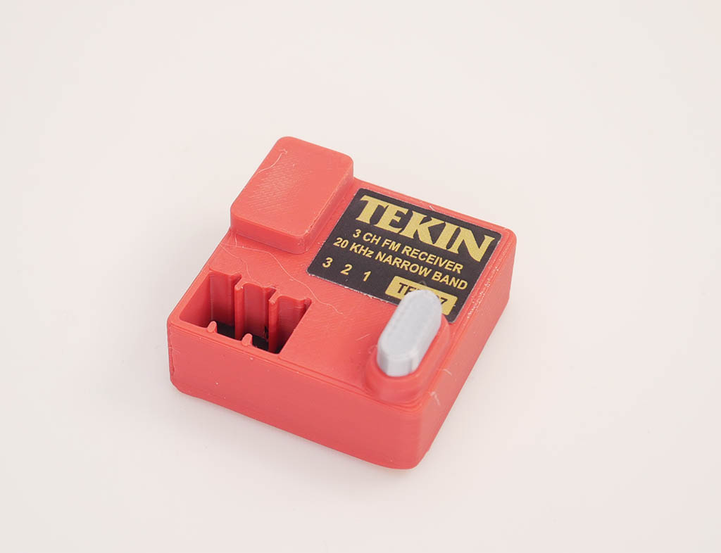 Pour exposer vos voitures RC vintage avec le look de l’époque, sans investir dans une électronique Tekin parfois couteuse et/ou difficile à trouver, voici une réplique fidèle du mini récepteur Team Tekin TFM 27. Réalisé en impression 3D multicolore et accompagné de son autocollant (avec possibilité de le passer en TFM 40 ou TFM 75). Autre couleur de boitier possible.