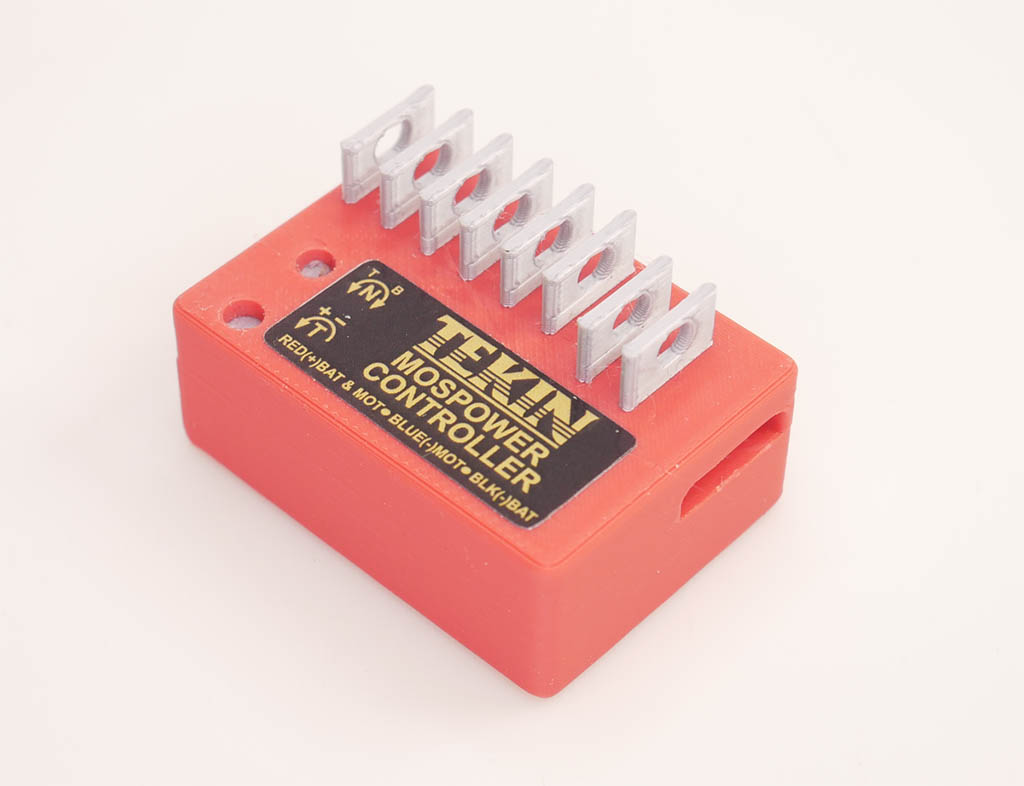 Pour exposer vos voitures RC vintage avec le look de l’époque, sans investir dans une électronique Tekin parfois couteuse et/ou difficile à trouver, voici une réplique fidèle du variateur Team Tekin Mospower Controller. Ce variateur des années 80 équipait entre autre l’Ultima de Joel Johnson lors de son titre mondial en 1987. Réalisé en impression 3D multicolore et accompagné de son autocollant. Autre couleur de boitier possible.